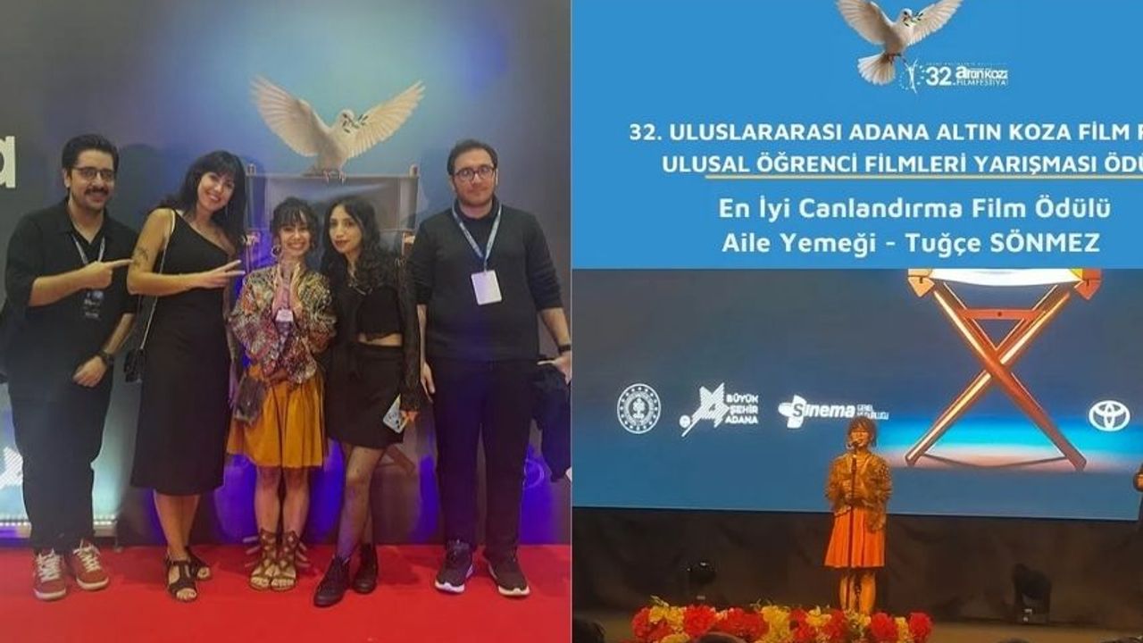 Sönmez’in, Doç. Dr. Alper Erçetingöz danışmanlığında ‘Yapım-Yönetim’ dersi kapsamında stop motion tekniğiyle hazırladığı ‘Aile Yemeği’ adlı kısa filmi, Ulusal Öğrenci Filmleri Yarışması Canlandırma Kategorisinde ‘En İyi Canlandırma Film Ödülü’nün sahibi oldu. Sönmez’in başarısı Aydın’da sevinçe karşılandı.