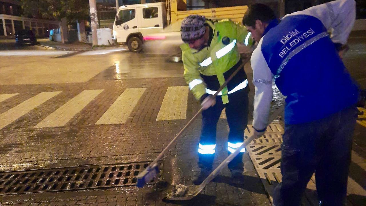 Didim’de gece saatlerinde etkili olan sağanak yağış, belediye ekiplerini alarma geçirdi. İlçe genelinde oluşabilecek su baskınları ve olumsuzluklara karşı Didim Belediyesi ekipleri gece boyunca sahada görev yaptı.