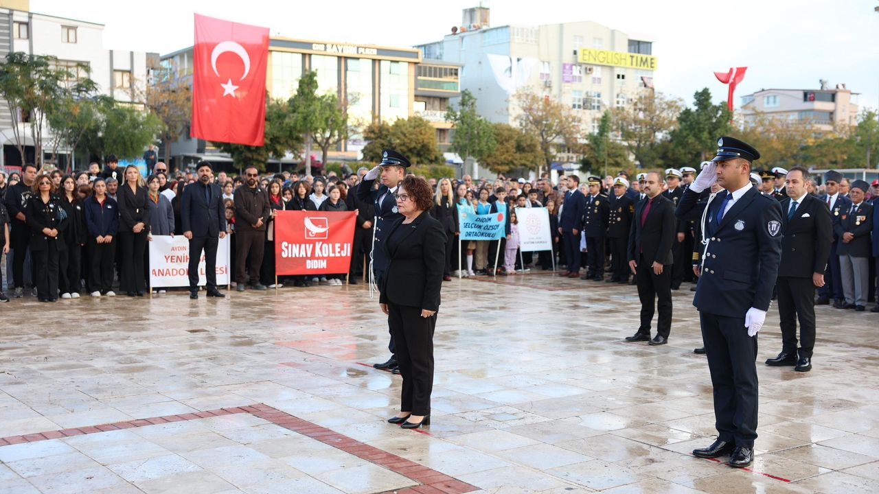 Didim Cumhuriyet Kent Meydanı’nda düzenlenen anma törenine Didim Kaymakamı Mesut Çoban, Didim Garnizon Komutanı Erkut Arslan, Didim Belediye Başkanı Hatice Gençay, Didim Cumhuriyet Başsavcısı Anıl Altay, ilçe protokolü, siyasi parti temsilcileri, sivil toplum kuruluşları temsilcileri, basın mensupları ve halkın yoğun katılımıyla gerçekleşti.